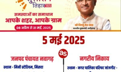 जांजगीर-चांपा, मुख्यमंत्री विष्णु देव साय के मंशानुरूप कलेक्टर जन्मेजय महोबे के निर्देशन में जिले में आमजनता को उनकी समस्या, शिकायत और मांग के निराकरण एवं शासन...