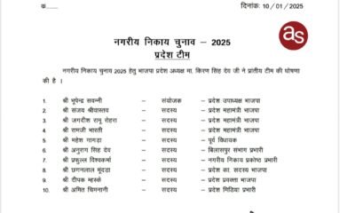 रायपुर, भारतीय जनता पार्टी (भाजपा) ने आगामी नगरीय निकाय चुनाव के लिए अपनी प्रदेश टीम का ऐलान कर दिया है। प्रदेश अध्यक्ष किरण देव ने शुक्रवार...