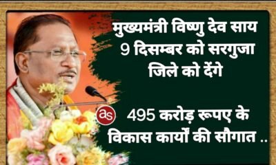 पायलट प्रोजेक्ट के रूप में मुख्यमंत्री अन्न कोष योजना का होगा शुभारंभ .. रायपुर, मुख्यमंत्री विष्णु देव साय 9 दिसम्बर को अम्बिकापुर के पीजी कॉलेज ग्राउण्ड...