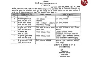 संयुक्त कलेक्टर सक्ती दुष्यंत कुमार रायस्त बने सूडा के अतिरिक्त सीईओ .. रायपुर, साप्रवि ने राज्य प्रशासनिक सेवा के 6 और अधिकारियों का तबादला आदेश जारी...