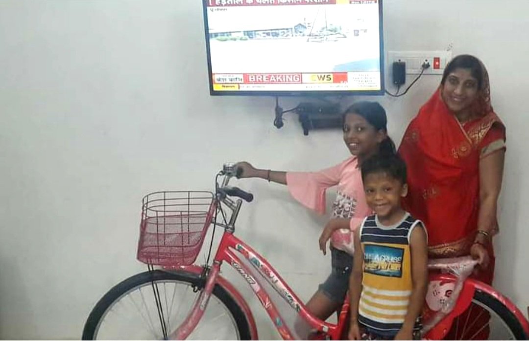 अब मैं और मेरा छोटा भाई लक्ष्य को पीछे की सीट पर बैठाकर विद्यालय लेकर जाती हूं। आप भी देखिये मेरी नई साइकिल।
