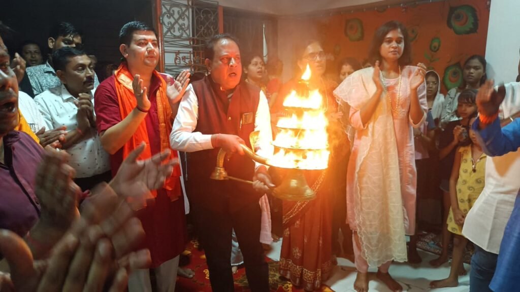 महाआरती के इन क्षणों में पुजारी ओमप्रकाश वैष्णव, उच्च न्यायालय अधिवक्ता चितरंजय पटेल, नेत्री रश्मि नारायण गबेल, संजय बंसल (लाख) के साथ उपस्थित श्रद्धालुजनों ने समवेत स्वर में हनुमान चालीसा का पाठ किया।