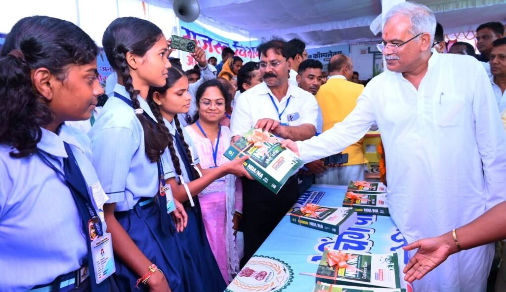 मुख्यमंत्री श्री बघेल ने कार्यक्रम में एनडीए प्रतियोगी परीक्षा की तैयारी कर रहे 10 बच्चों को किया पुस्तकों का वितरण किया। उल्लेखनीय है कि जिला प्रशासन द्वारा 50 बच्चों को वर्ष 2023-44 की एनडीए प्रतियोगी परीक्षा की तैयारी के लिए कोचिंग दी जा रही है।