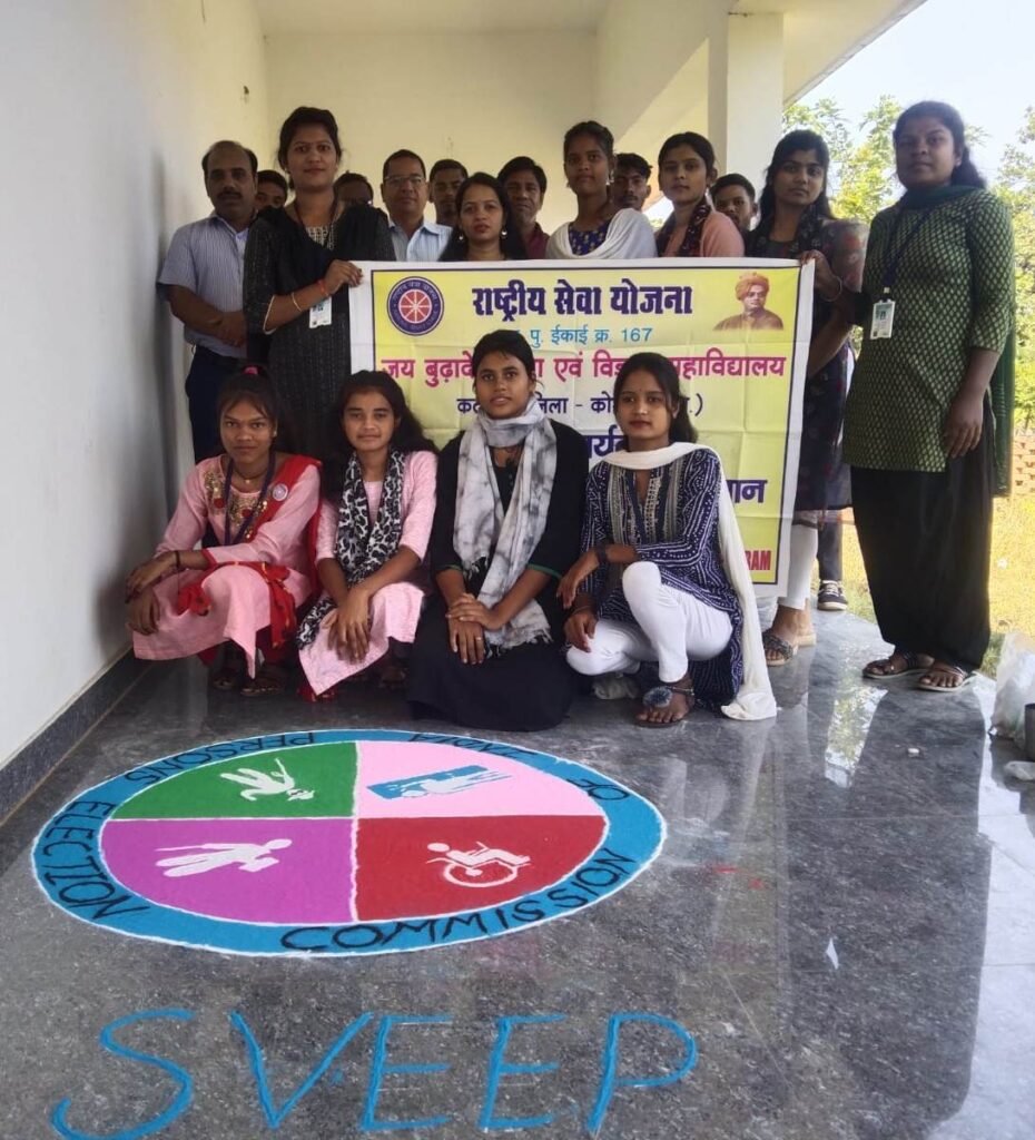 इसी तरह कटघोरा के जय बूढ़ा देव कॉलेज में मतदाता जागरूकता अभियान के तहत राष्ट्रीय सेवा योजना इकाई द्वारा गोद ग्राम रामपुर में मतदाता जागरूकता रैली निकाली गई तथा महाविद्यालय परिसर में छात्राओं द्वारा स्वीप रंगोली बनाई गई। महाविद्यालय के नोडल अधिकारी द्वारा छात्र-छात्राओं को शत-प्रतिशत् मतदान करने शपथ दिलाई गई। कार्यक्रम में जागरूकता रैली के माध्यम से लोगों को जागरूक करते हुए लोकतंत्र के त्यौहार में बढ़चढ़ कर हिस्सा लेने व सभी को मतदान करने हेतु आग्रह किया गया। साथ ही ग्रामीणों को अपने आस-पास निवासरत् लोगो को भी जागरूक करने के लिए प्रोत्साहित किया गया। स्वयं सेवकों को पेंटिंग व नुक्कड़ नाटक के माध्यम से भी लोगों को मतदान के प्रति जागरूक करने की जिम्मेदारी सौंपी गई।