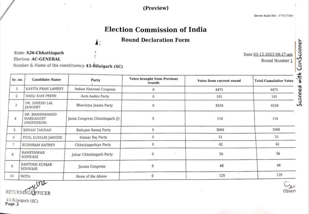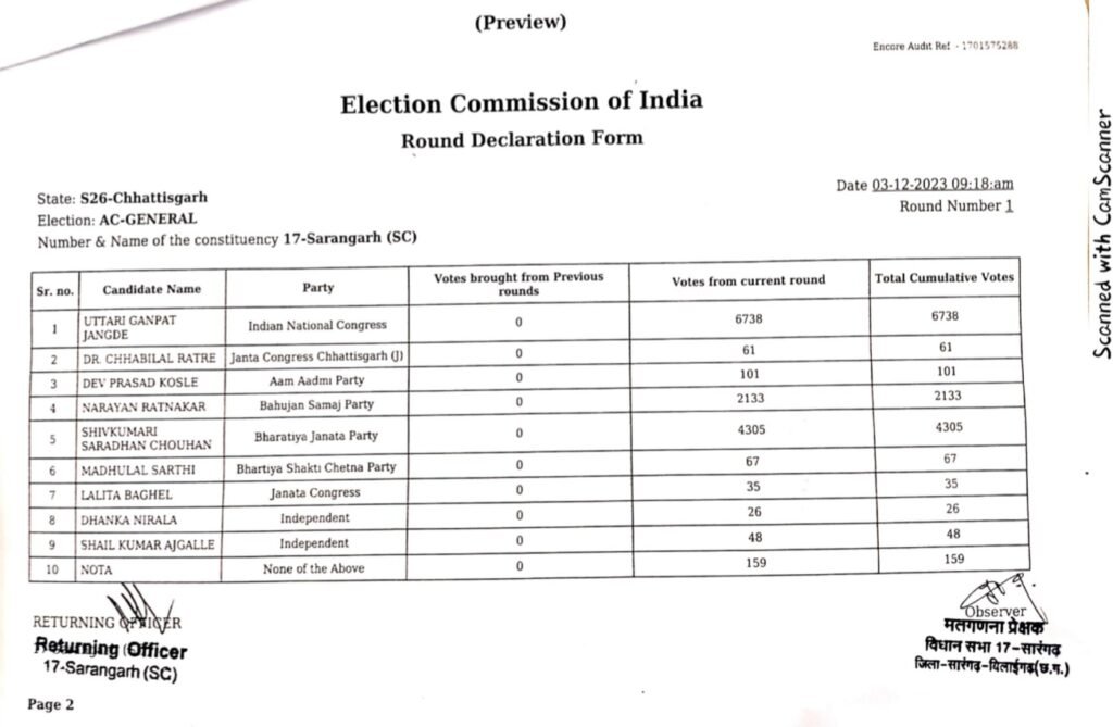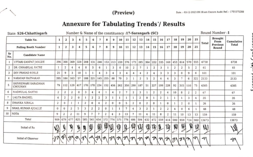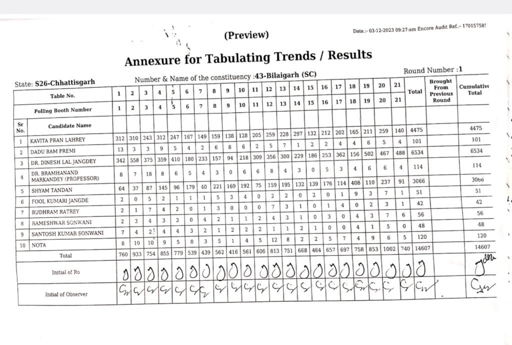 बड़ी खबर कोरबा जिले की प्रथम चरण की गणना के बाद तीनों विधानसभा के रुझान ईस प्रकार है ..