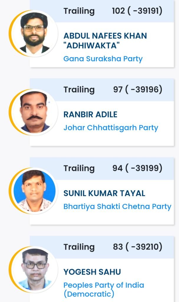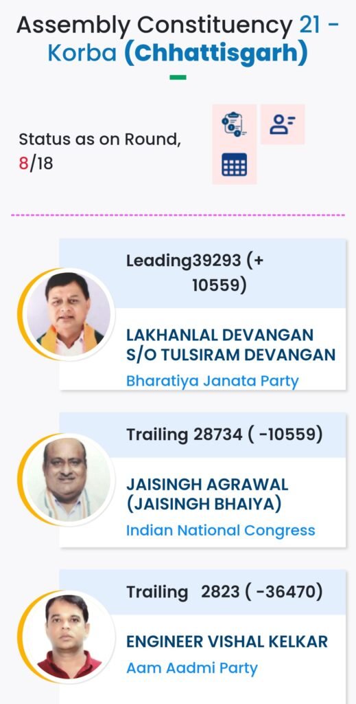 बड़ी खबर : कोरबा विधानसभा क्षेत्र क्रमांक 21 के आठवें चरण की गणना के बाद रुझान ईस प्रकार है ..