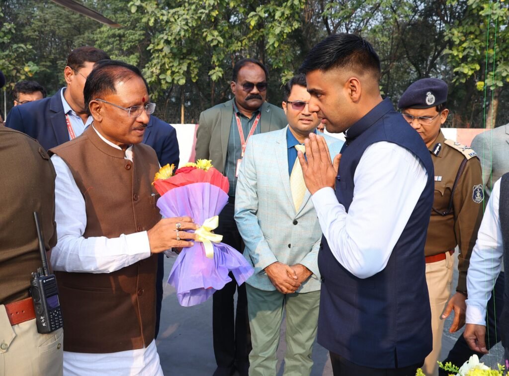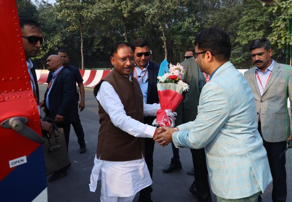 मुख्यमंत्री विष्णु देव साय ओ पी जिंदल एयर स्ट्रीप रायगढ़ पहुँचे ..