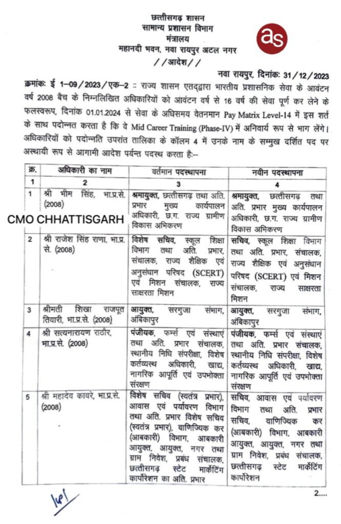 बड़ी खबर: 8 IAS अफसरों को मिली पदोन्नति, राज्य सरकार ने जारी किया आदेश… देखिए प्रमोशन लिस्ट ..
