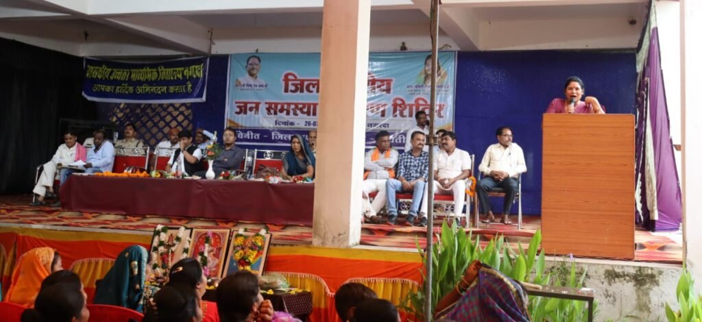 जिला स्तरीय जनसमस्या निवारण शिविर में सभापति कृषि स्थायी समिति श्रीमती विद्या सिदार ने कहा कि आमलोंगों की समस्याओं का निराकरण करने के लिए जिला स्तरीय जनसमस्या निवारण शिविर का आयोजन किया जा रहा है। शिविर में विभागीय स्टॉल भी लगाये गए है जहाँ विभिन्न योजनाओं से संबंधित लोगों की समस्याओं का निराकरण और योजनाओं की जानकारी भी दी जा रही है। उन्होंने कहा कि कलेक्टर अमृत विकास तोपनो के निर्देशन में आमजन की सुविधा के लिए जिले के सभी विकासखंड अंतर्गत विभिन्न चिन्हांकित स्थलों में शिविर का आयोजन किया जा रहा है। उन्होंने सभी लोंगों से जिला स्तरीय शिविर का ज्यादा से ज्यादा लाभ लेने कहा की यह शिविर लोंगों के लिए विभिन्न विभागों से संबंधित समस्याओं के हल के लिए एक अवसर है जहां आमजन अपनी समस्या अपने विकासखंड के नजदीक निर्धारित स्थल पर पहुँचकर रख सकते है। जिला कलेक्टर की उपस्थिति में आज दूसरा जिला स्तरीय जनसमस्या निवारण शिविर आयोजित है। उन्होंने कहा की आमलोंगों की समस्याओं का निराकरण करने के लिए शिविर का आयोजन किया जा रहा है। उन्होंने नगरदा में जिला स्तरीय जनसमस्या निवारण शिविर का आयोजन करने के लिए धन्यवाद दिया। इसी तरह कार्यक्रम को संबोधित करते हुए कलेक्टर एवं जिला दंडाधिकारी अमृत विकास तोपनो ने कहा कि जिला स्तरीय जनसमस्या निवारण शिविर का उद्देश्य आमलोंगों की समस्या सुनकर उसका तेजी से निराकरण करना है। उन्होंने सभी अधिकारियों और कर्मचारियों को आमजनों से प्राप्त आवेदनों का नियमानुसार त्वरित निराकरण करने कहा। कार्यक्रम के अंत में मुख्य कार्यपालन अधिकारी श्रीमती प्रीती पवार द्वारा आभार व्यक्त किया गया।
