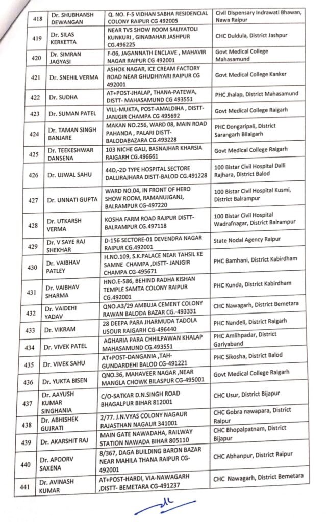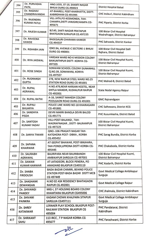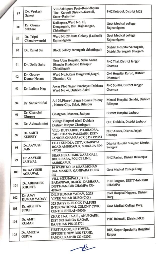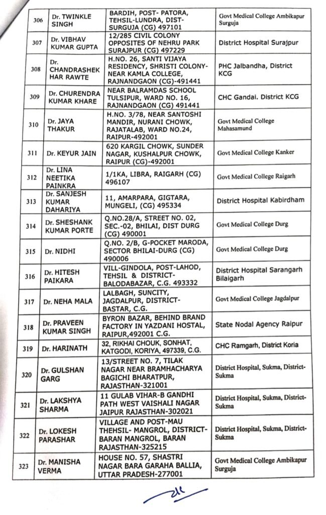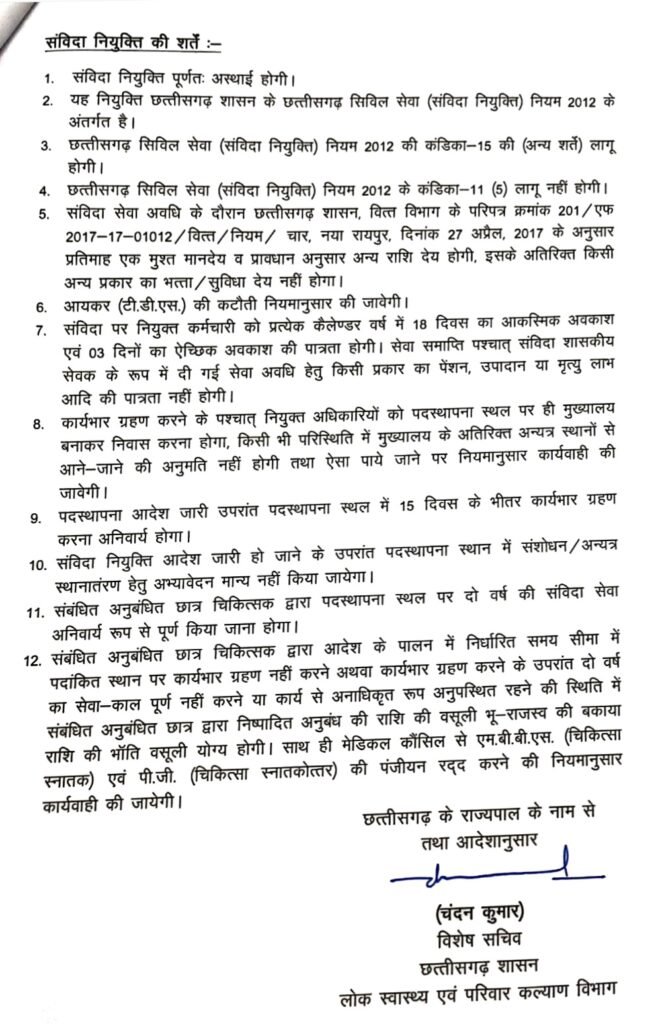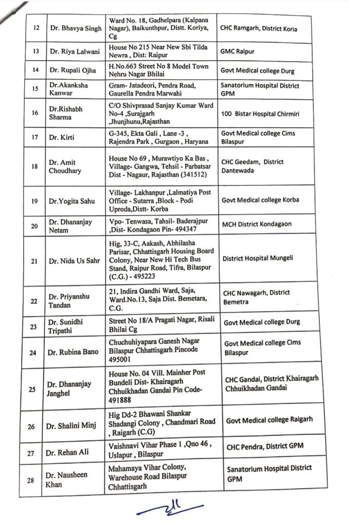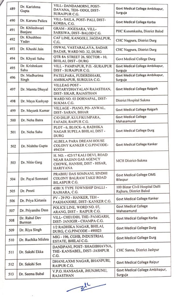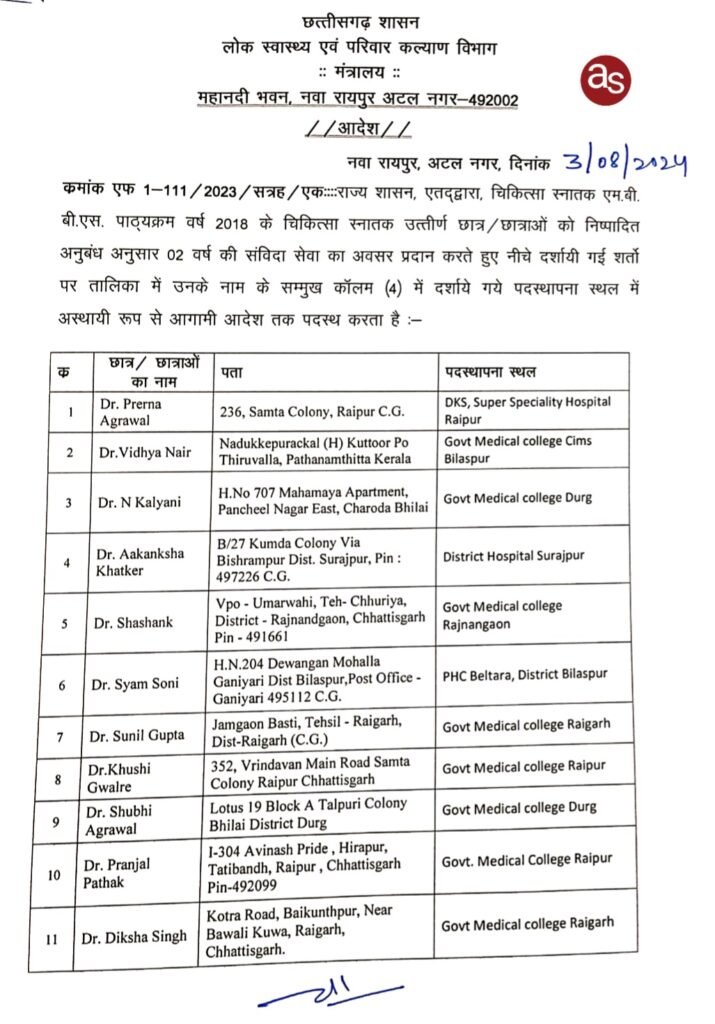 स्वास्थ्य मंत्री श्याम बिहारी जायसवाल के निर्देश पर जारी हुआ पदस्थापना आदेश ,