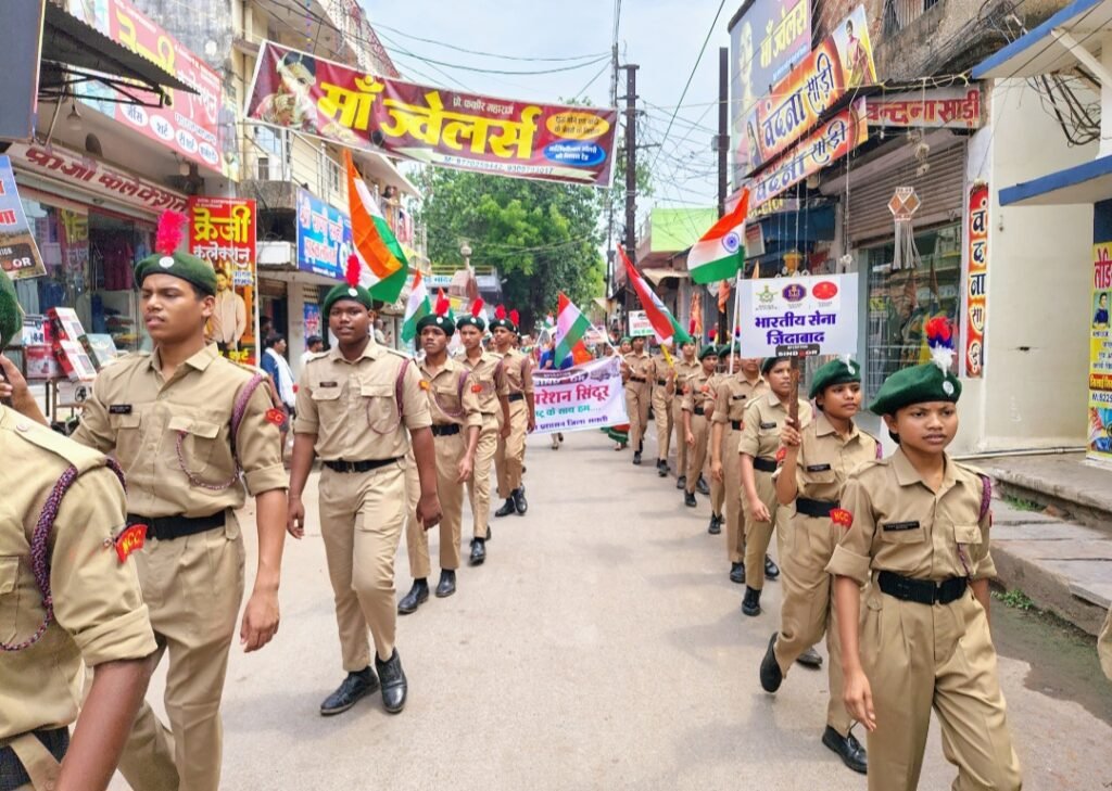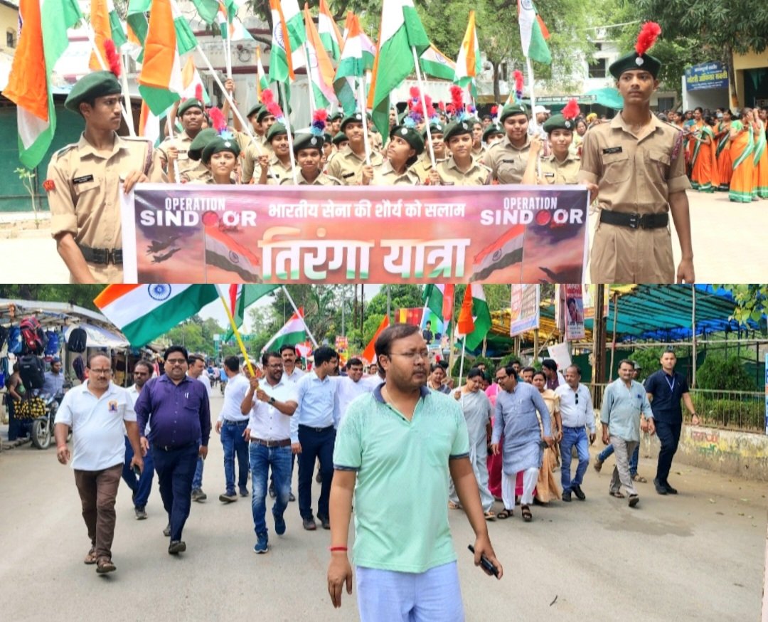 सक्ती, “ऑपरेशन सिंदूर” के तहत सक्ती जिले में सशस्त्र बलों और अर्धसैनिक बलों, भारत की जीत को समर्पित सभी को धन्यवाद देने तिरंगा यात्रा का भव्य आयोजन किया गया। यात्रा की शुरुआत जनपद कार्यालय सक्ती से हुई, जो नगर के प्रमुख मार्गों से कचहरी चौंक होते हुए जनपद कार्यालय सक्ती में सम्पन्न हुई। यात्रा के दौरान ‘भारत माता की जय’, ‘वंदे मातरम्’ और ‘जय हिंद’ के नारों से देशभक्ति से सराबोर हो गया। यह तिरंगा यात्रा सक्ती जिले में एक नई उमंग, उत्साह और राष्ट्रीय एकता का प्रतीक बनकर उभरी। यह तिरंगा यात्रा ना केवल भारत की सैन्य शक्ति का प्रतीक बनी, बल्कि आम नागरिकों के देशप्रेम और एकता की मिसाल भी साबित हुई। सक्ती जिले के विभिन्न ग्राम पंचायतों एवं नगरीय निकायों में भी तिरंगा यात्रा देखने को मिला।