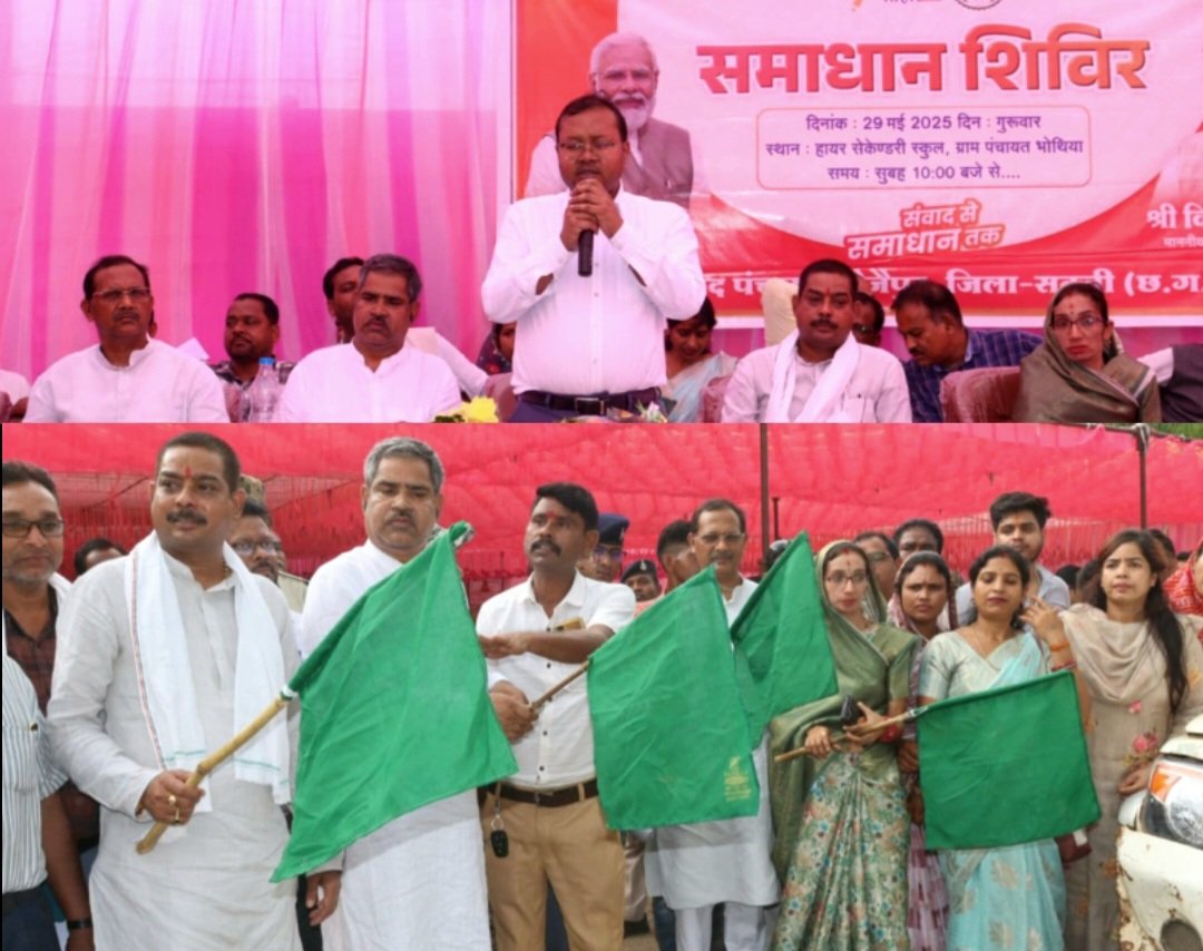 सक्ती, छत्तीसगढ़ शासन की अभिनव पहल ‘सुशासन तिहार’ प्रदेश में पारदर्शी, संवेदनशील एवं जवाबदेह प्रशासन की दिशा में एक सशक्त प्रयास सिद्ध हो रहा है। इसके अंतर्गत आयोजित समाधान शिविरों के माध्यम से आम नागरिकों की समस्याओं का त्वरित निराकरण किया जा रहा है। इसी क्रम में आज जनपद पंचायत जैजैपुर के ग्राम पंचायत भोथिया में और जनपद पंचायत डभरा के ग्राम पंचायत सकराली में समाधान शिविर का आयोजन किया गया। ग्राम पंचायत भोथिया में आयोजित समाधान शिविर में विधायक जैजैपुर बालेश्वर साहू, कलेक्टर अमृत विकास तोपनो सहित जनप्रतिनिधियों द्वारा विकसित कृषि संकल्प अभियान रथ को हरी झंडी दिखाकर रवाना किया गया।
