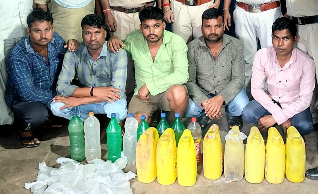 आबकारी विभाग सक्ती की संयुक्त टीम ने पकड़ी 76 लीटर महुआ शराब, 5 आरोपी गिरफ्तार ..