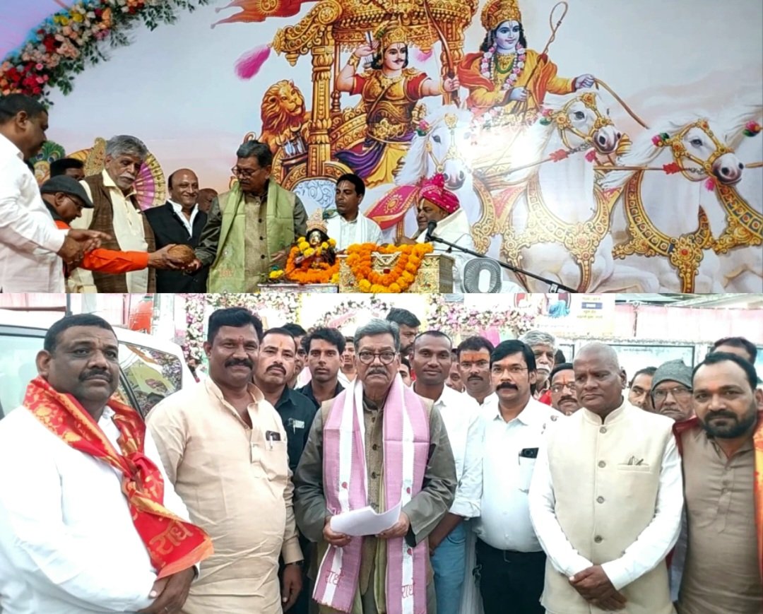 सकरेली में श्रीमद् भागवत कथा के तृतीय दिवस में पहुंचे नेता प्रतिपक्ष डॉ. चरणदास महंत ..