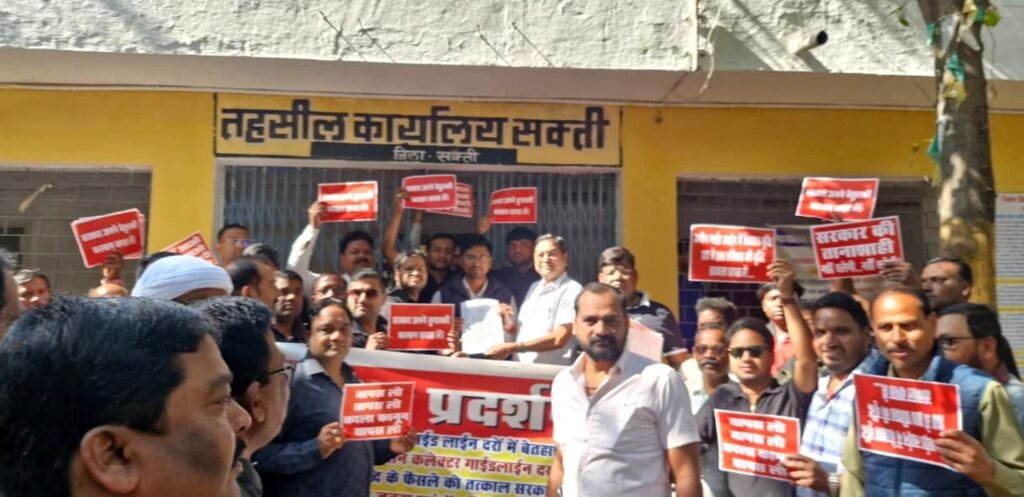 जमीन गाइडलाइन वृद्धि के विरोध में सक्ती में जबरदस्त प्रदर्शन ..