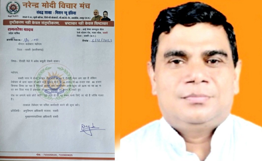 सक्ती रौताही मेले में खुलेआम अवैध वसूली! नरेन्द्र मोदी विचार मंच के प्रदेश सचिव रामनरेश यादव ने कलेक्टर को सौपा ज्ञापन की सख़्त कार्रवाई की मांग ..