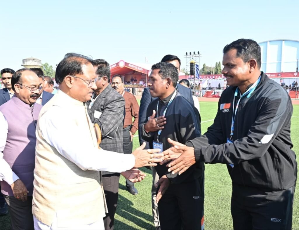 इसके बाद यह गौरवशाली मशाल सुकमा जिले के सुदूर अंचल पूवर्ती के प्रतिभावान खिलाड़ी विजय डोडी और नारायणपुर जिले के ओरछा ब्लॉक की निवासी सलोनी कवाची को सौंपा गया। कबड्डी खिलाड़ी विजय डोडी और खो-खो खिलाड़ी सलोनी कवाची ने पूरे उत्साह, ऊर्जा और गौरव के साथ ग्राउंड की परिक्रमा करते हुए मशाल को मुख्य प्रज्वलन स्थल तक पहुंचाया। यह क्षण सुकमा और नारायणपुर जिलों के लिए अत्यंत गौरवपूर्ण और भावनात्मक था – जब माओवाद-प्रभावित एवं दूरस्थ क्षेत्रों के खिलाड़ी आत्मविश्वास के साथ हजारों दर्शकों के सामने दौड़ रहे थे। दर्शकों का उत्साह भी इस दौरान चरम पर पहुंच गया।