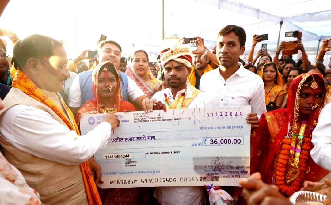 सक्ती, मुख्यमंत्री विष्णुदेव साय आज 11 दिसम्बर को सक्ती जिले के प्रवास पर पहुंचे। मुख्यमंत्री साय के मुख्य आतिथ्य में आज मुख्यमंत्री कन्या विवाह योजना के तहत विकासखण्ड जैजैपुर अंतर्गत हसौद में 140 जोड़ें परिणय सूत्र में बंधे। मुख्यमंत्री साय ने सभी वर-वधुओं को दाम्पत्य सूत्र में बंधने पर बधाई दी और उनके सुखद जीवन की कामना की। मुख्यमंत्री ने सभी वर-वधुओं को अपने माता-पिता की तरह सास-ससुर का भी सम्मान करने, परेशानियों की स्थिति में संयम रखते हुए मिलकर आगे बढने तथा हर सुख -दुःख में एक दूसरे का साथ देने के लिए प्रेरित किया। इस अवसर पर मुख्यमंत्री श्री साय ने कहा कि इस योजना का उद्देश्य गरीब, जरूरतमंद और निराश्रित परिवारों की बेटियों के विवाह के लिए आर्थिक सहायता प्रदान करना है, ताकि शादी के समय होने वाले आर्थिक बोझ को कम किया जा सके, फिजूलखर्ची और दहेज प्रथा को रोका जा सके, और सामाजिक समानता व लड़कियों के सम्मान को बढ़ावा मिले। यह योजना विवाह के लिए जरूरी घरेलू सामान और सामूहिक विवाह के खर्चों के लिए वित्तीय मदद देती है, साथ ही लड़कियों की शिक्षा और 18 वर्ष की आयु पूरी करने पर जोर देती है।