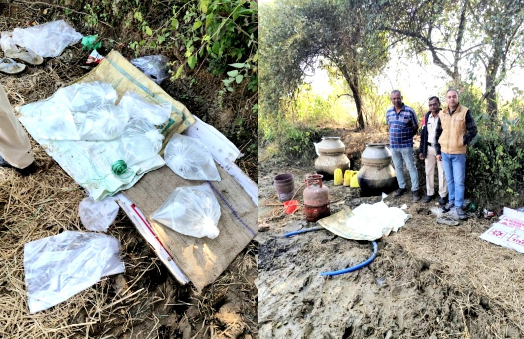 कार्रवाई के दौरान प्लास्टिक पन्नियों में संग्रहित 45 लीटर कच्ची महुआ शराब तथा 20 बोरियों में रखा महुआ लाहन बरामद किया गया। प्रत्येक बोरी में लगभग 20 किलो लाहन भरा हुआ था, इस प्रकार कुल 400 किलो महुआ लाहन जब्त किया गया। बरामद सामग्री लावारिस अवस्था में पाई गई, जिसे नियमानुसार मौके पर ही नष्ट कर दिया गया।