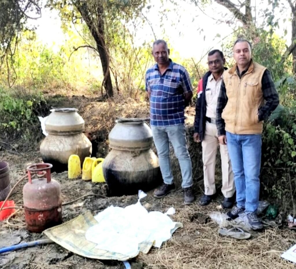सक्ती में अवैध महुआ शराब के खिलाफ आबकारी विभाग की बड़ी कार्रवाई, 45 लीटर शराब व 400 किलो लाहन नष्ट ..