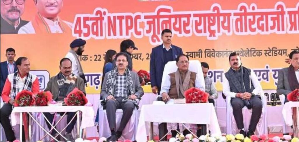 उल्लेखनीय है कि 45वीं एनटीपीसी जूनियर राष्ट्रीय तीरंदाजी प्रतियोगिता का आयोजन छत्तीसगढ़ प्रदेश आरचरी एसोसिएशन एवं छत्तीसगढ़ खेल एवं युवा कल्याण विभाग के तत्वावधान में किया जा रहा है। यह प्रतियोगिता 22 से 30 दिसंबर तक आयोजित होगी। प्रतियोगिता में 30 राज्यों और केंद्र शासित प्रदेशों से लगभग 500 खिलाड़ी हिस्सा ले रहे है।