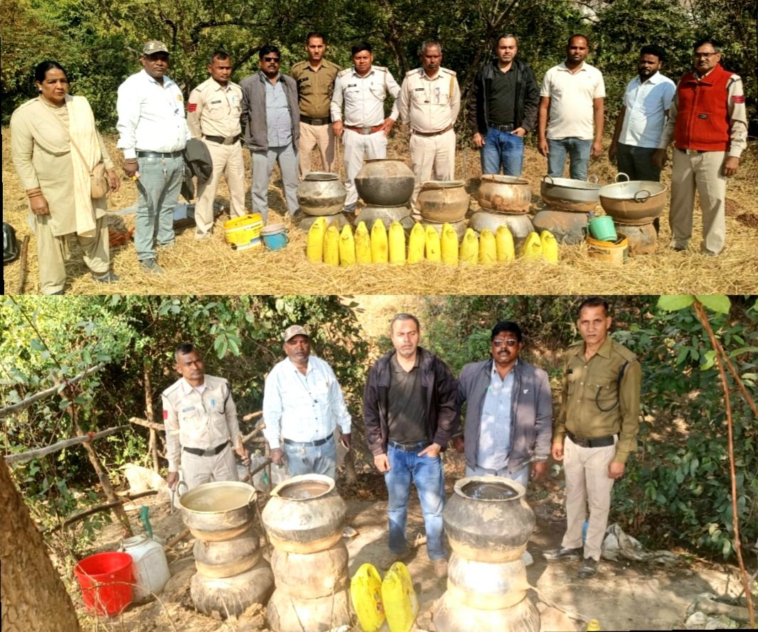 115 लीटर महुआ शराब और 500 किलो लाहन जब्त, शराब माफियाओं में मचा हड़कंप ,