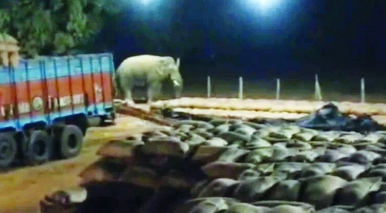 धान खरीदी केंद्र में दंतैल हाथी की दस्तक, कर्मचारियों में मची अफरा-तफरी ..