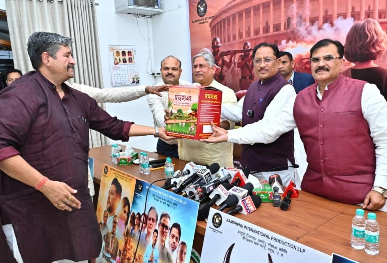 मुख्यमंत्री साय ने फिल्म के पोस्टर तथा गीत ‘ गौमाता के प्राणों को बचा लो देशवासियों’ का भी लॉन्च किया। उन्होंने पंचगव्य उत्पाद के गिफ्ट पैक का भी विमोचन किया। गौमाता की महत्ता को अभिव्यक्त करने वाली कामधेनु फिल्म प्रोडक्शंस की फिल्म गोदान 6 फरवरी को भारतीय सिनेमाघरों में रिलीज होगी।