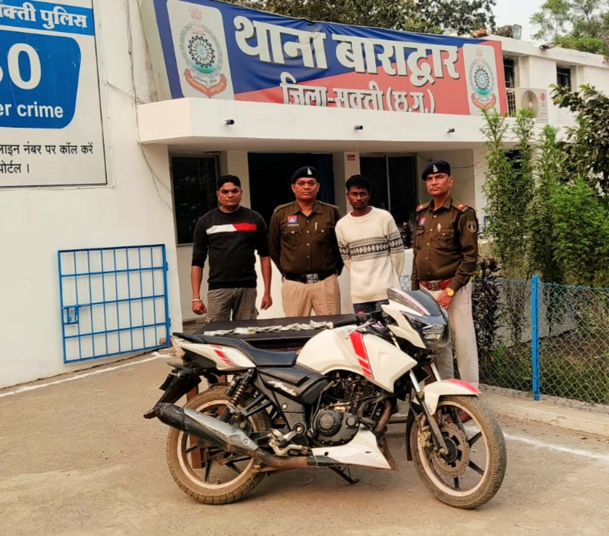 सक्ती, थाना बाराद्वार क्षेत्र में बुजुर्ग व्यक्ति से लूट की घटना को अंजाम देने वाले एक आरोपी एवं दो अपचारी बालकों को पुलिस ने त्वरित कार्रवाई करते हुए गिरफ्तार कर लिया है। आरोपियों के कब्जे से लूटी गई नकदी एवं वारदात में प्रयुक्त मोटरसाइकिल भी बरामद कर ली गई है।