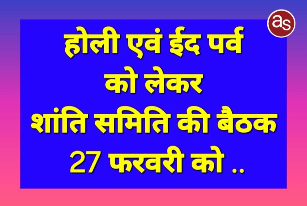 होली एवं ईद पर्व को लेकर शांति समिति की बैठक 27 फरवरी को ..