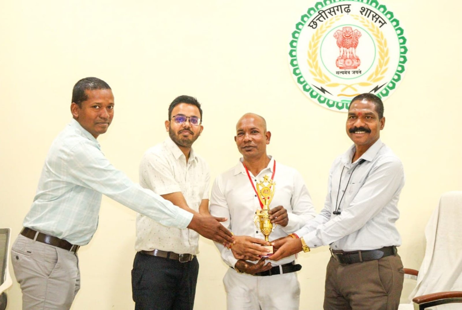 सक्ती, अपर कलेक्टर बालेश्वर राम ने कलेक्टर कार्यालय के कर्मचारी और पावरलिफ्टर गुरुवचन सिंह कंवर को छत्तीसगढ़ के तखतपुर में आयोजित पावर लिफ्टिंग प्रतियोगिता में गोल्ड मेडल जीतने पर अपने कार्यालय कक्ष में सम्मानित किया। अपर कलेक्टर ने गुरुवचन सिंह के उज्जवल भविष्य की कामना की है। इस दौरान डिप्टी कलेक्टर प्रीतेश राजपूत भू अभिलेख अधिकारी बैजू लाल उपस्थित थे।