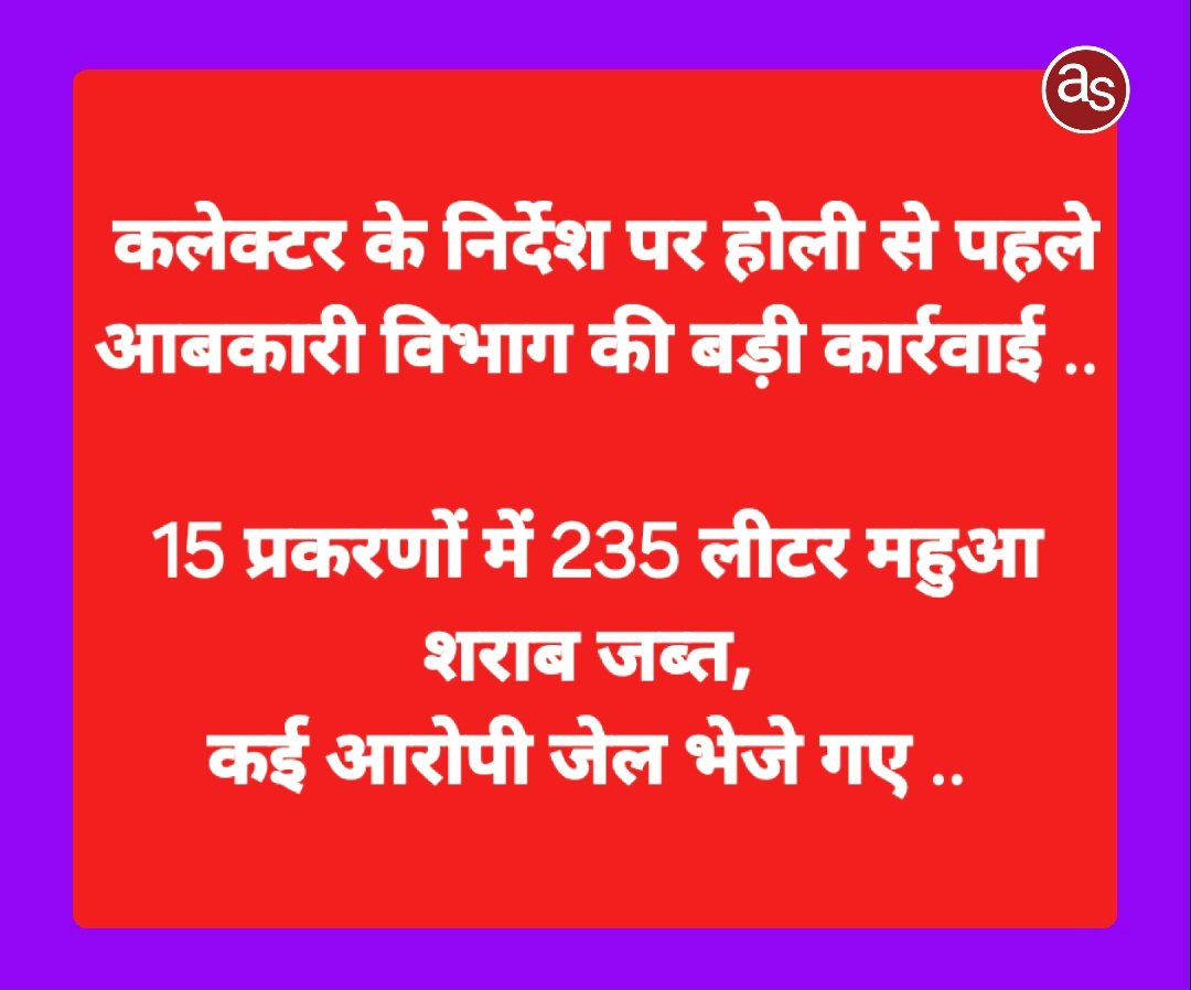 कलेक्टर के निर्देश पर होली से पहले आबकारी विभाग की बड़ी कार्रवाई ..