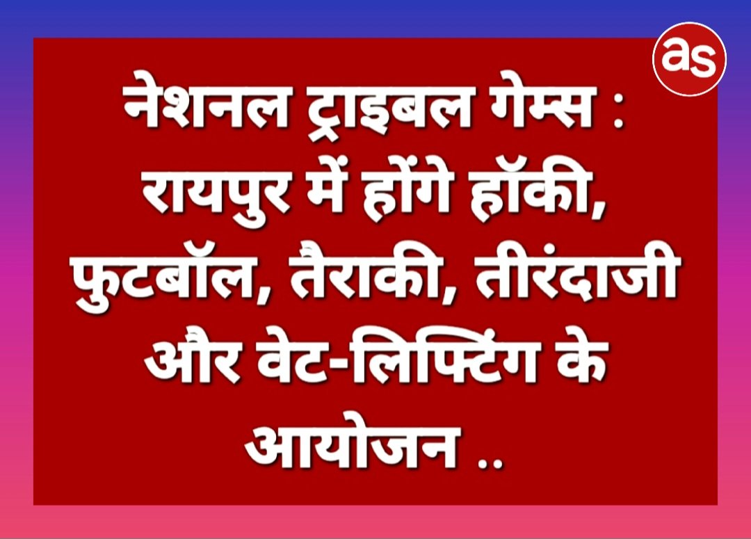 नेशनल ट्राइबल गेम्स : रायपुर में होंगे हॉकी, फुटबॉल, तैराकी, तीरंदाजी और वेट-लिफ्टिंग के आयोजन ..