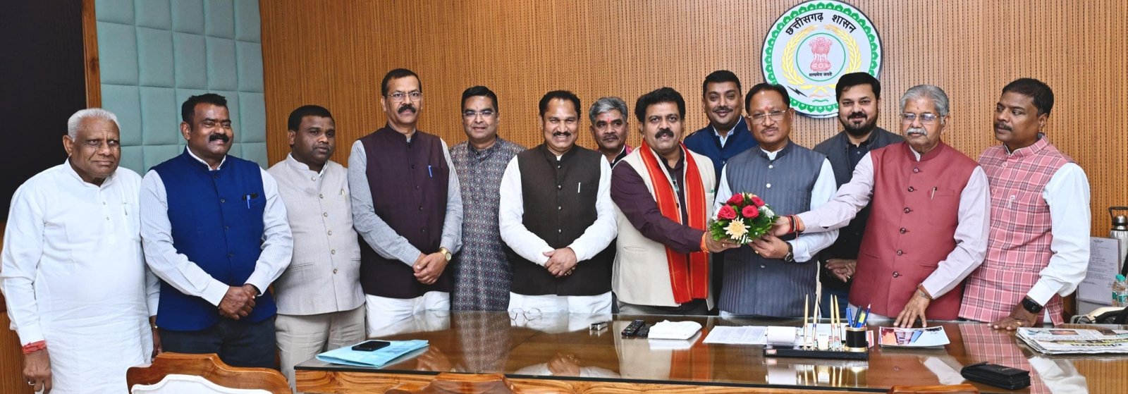 रायपुर, विधानसभा के बजट सत्र के सफल समापन पर मंत्रीगण एवं विधायकगण ने मुख्यमंत्री विष्णु देव साय से विधानसभा स्थित उनके कार्यालय में भेंट कर उन्हें बधाई दी।