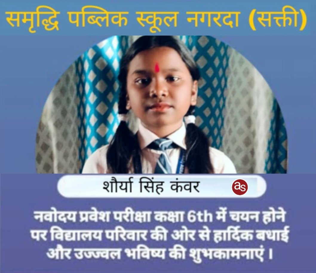 समृद्धि पब्लिक स्कूल, नगरदा की होनहार छात्रा शौर्या कंवर ने नवोदय में पाई सफलता, क्षेत्र में खुशी की लहर ..