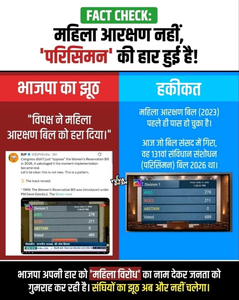 जिला कांग्रेस कमेटी के महामंत्री गिरधर जायसवाल ने कहा कि पहले से पारित बिल को दोबारा लाने की आवश्यकता पर भी सवाल खड़े होते हैं। उनके मुताबिक, परिसीमन से जुड़े प्रस्तावों के पीछे भाजपा की राजनीतिक मंशा है, जिससे क्षेत्रीय असंतुलन बढ़ सकता है और उत्तर-दक्षिण के बीच विभाजन की स्थिति बन सकती है।