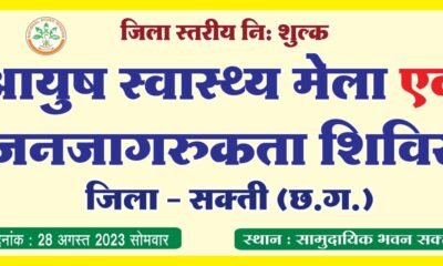 शिविर का शुभारंभ २८अगस्त को स्थानीय विधायक व विधानसभा अध्यक्ष डा चरणदास महंत के मुख्य आतिथ्य मे होगा , जिला नोडल अधिकारी डा उत्तम गबेल ने...