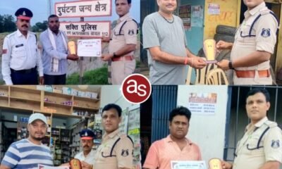 दुर्घटनाओ मे अविलम्ब सूचना देने वाले यातायात मित्रो को उत्साहवर्धन हेतु प्रशस्ति पत्र एवं स्मृति चिन्ह भेंट कर किया सम्मानित .. सक्ती , पुलिस अधीक्षक सुश्री...