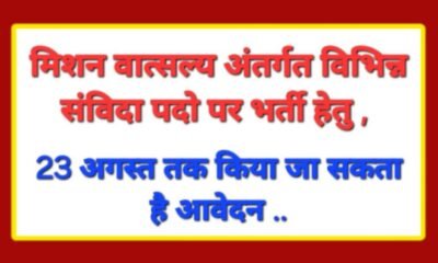 23 अगस्त तक किया जा सकता है आवेदन .. सक्ती, भारत सरकार, महिला एवं बाल विकास मंत्रालय द्वारा स्वीकृत मिशन वात्सल्य योजना के प्रावधानों एवं स्वीकृति...