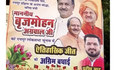रायपुर, चुनाव नतीजों से पहले ही 3 जून को रायपुर लोकसभा से भाजपा प्रत्याशी बृजमोहन अग्रवाल की जीत का होर्डिंग्स लगाए जाने पर कांग्रेस ने आपत्ति...