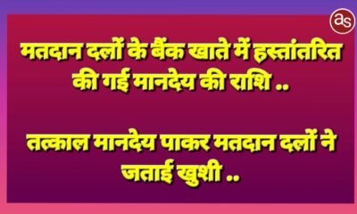 तत्काल मानदेय पाकर मतदान दलों ने जताई खुशी .. कोरबा, लोकसभा निर्वाचन 2024 अंतर्गत कोरबा जिले में मतदान कराने वाले मतदान दलों को मतदान के दूसरे...