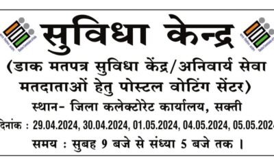 आज से डाक मतपत्र से किया जा सकता है मतदान .. सक्ती, कलेक्टर एवं जिला निर्वाचन अधिकारी अमृत विकास तोपनो के निर्देशन में लोकसभा सामान्य निर्वाचन...