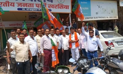 खरसिया, भारतीय जनता पार्टी के राष्ट्रीय नेतृत्व के आह्ववान में विजय झंडा हर बूथ में एक एक कार्यकर्ता को दस दस घर झंडा लगाने का अमल...